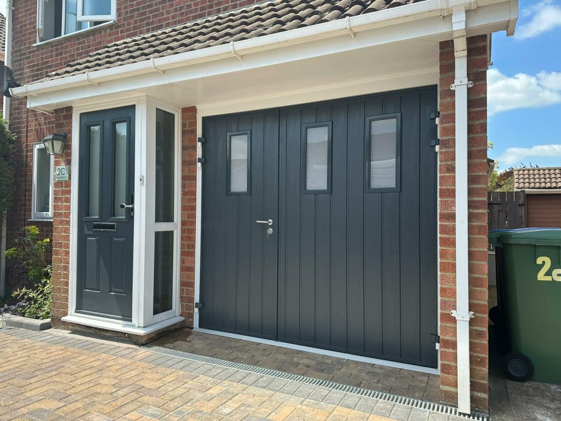 Side-hinged garage doors are traditional doors that open out, offering practical access without opening the whole door. They work well on a single garage where there isn’t headroom for a vertical-rising door like sectional or roller garage doors.